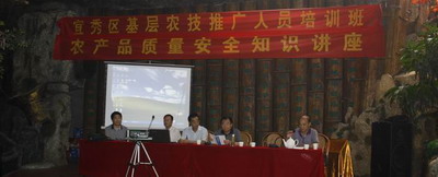 6月13日,市农委在宜秀区开展“农产品质量安全”系列讲座及培训,宜秀区农业局及全区6个乡镇(街道)的农业技术人员、农产品质量安全监管站工作人员共计80余人参加了培训会。培训会上,市农委副主任朱银祥就如何开展好农产品质量安全监管工作作了重要指示,市农委畜牧和种植业专家分别就农产品质量安全知识作了详尽阐述。培训会现场还印发了《农产品质量安全法》、《假劣农资识别方法》等书籍材料600余份。