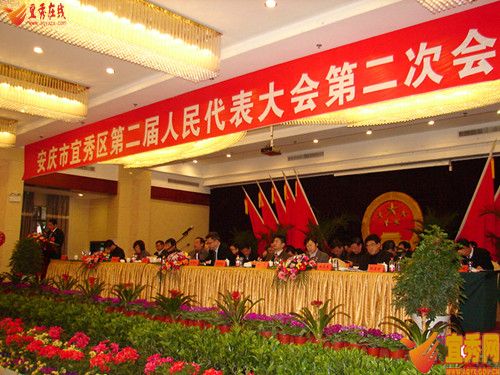 12月26日,皖源国际大酒店多功能厅里花团锦簇、流光溢彩。宜秀区第二届人民代表大会第二次会议在这里隆重举行。来自全区各地的人大代表肩负着全区人民的重托,齐聚一堂,共谋宜秀发展大计。