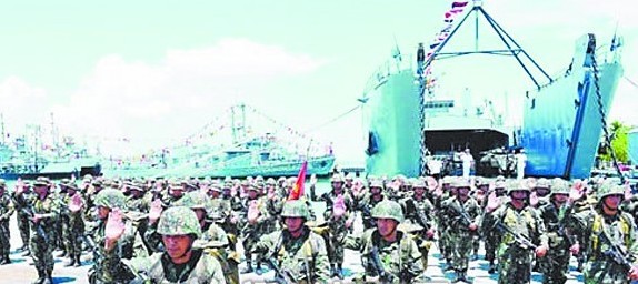 5月9日,菲律宾出动3艘军舰驶向仁爱礁。据《环球时报》记者从权威渠道得知,这3艘菲律宾海军军舰包括一艘PS36“孔雀”级巡逻舰、一艘PS74驱逐舰和一艘PS71运兵舰。奥妙在于运兵舰上——它搭载的不只是兵员,而是大量的礁盘建筑材料,这些材料是菲律宾海军工兵试图修复坐滩仁爱礁的菲律宾破军舰及其上面所搭建的临时建筑,从而强化其对仁爱礁的侵占。