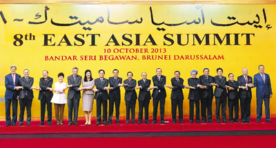 本报斯里巴加湾市10月10日电 (记者吴乐珺、王慧)国务院总理李克强10日在文莱斯里巴加湾市出席第八届东亚峰会。东盟十国以及韩、日、美、俄、印度、澳大利亚、新西兰等国领导人或代表出席。文莱苏丹哈桑纳尔主持会议,各国领导人围绕东亚合作发展、有关国际地区问题和全球性议题交换意见。