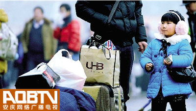 昨天上午,一名随家长回老家的小女孩在等候进站。