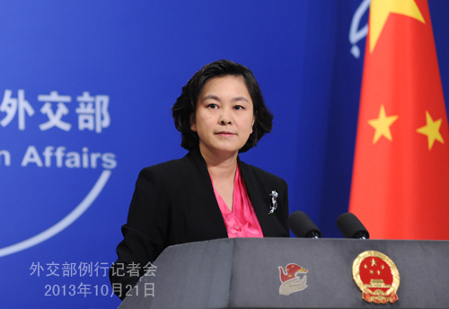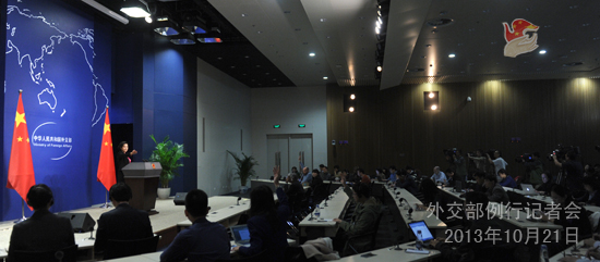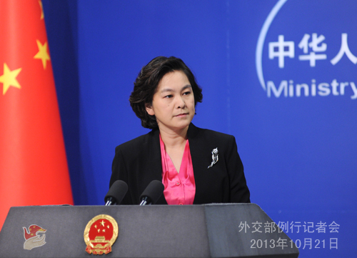 2013年10月21日,外交部发言人华春莹主持例行记者会。