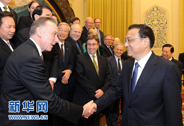 11月14日,国务院总理李克强在北京人民大会堂会见出席中国环境与发展国际合作委员会2013年年会的外方代表并座谈。新华社记者刘建生摄