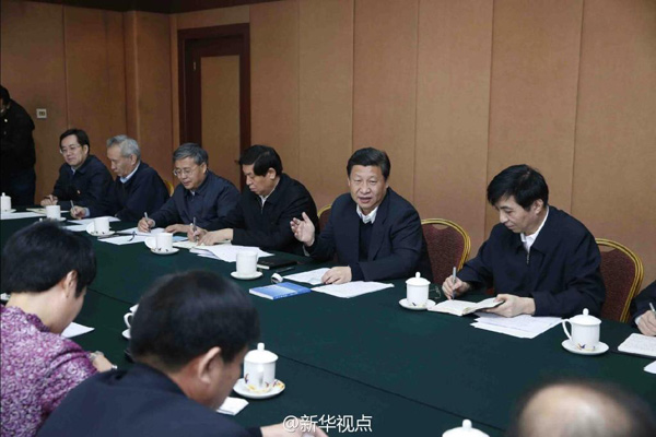 习近平随后同有关专家学者代表座谈,听取他们发言后表示,中华民族有着源远流长的传统文化,也一定能创造中华文化新的辉煌。研究孔子和儒家思想要坚持历史唯物主义立场,坚持古为今用,去粗取精,去伪存真,因势利导,深化研究,使其在新的时代条件下发挥积极作用。
