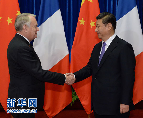 习近平表示,明年是中法建交50周年,两国建交是东西方交往史上具有里程碑意义的重大事件,打开了中西方相互了解与交流的大门。今年4月奥朗德总统访华期间,我同他就深化中法全面战略伙伴关系达成广泛共识。当前这些共识正在逐步落实,中法高级别经济财金对话上个月成功举行首次会议。中方愿与法方一道,继续巩固高水平的政治互信,尊重彼此核心利益和重大关切,加强沟通,扩大共识,妥处分歧,不断增强中法关系的稳定性,推动中法关系迈上新台阶。