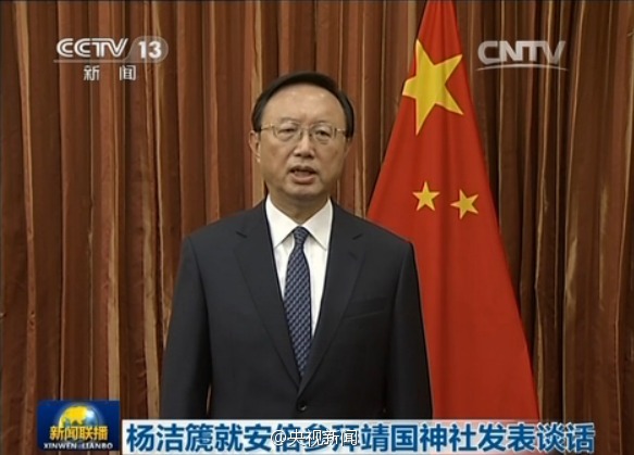 2013年12月28日,国务委员杨洁篪就日本首相安倍晋三参拜靖国神社发表谈话。