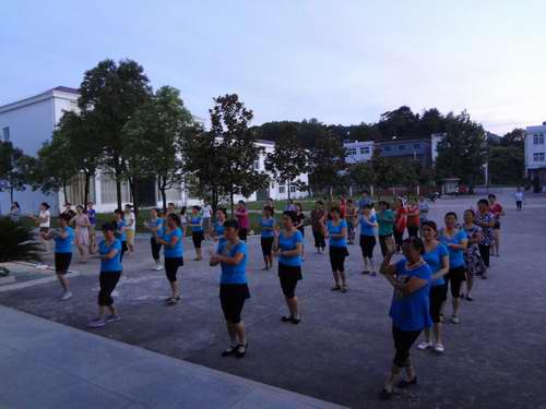 以前寂静的小山村,老百姓们除了少数人打打麻将、扑克牌以外,其余人都在家看电视,业余生活单一且枯燥无味。如今,每天傍晚,五横社区的男女老少们便早早的吃过晚饭,成群结队、有说有笑的来到各自组建广场舞队伍的广场,随着欢快的舞曲,大伙排着整齐的方阵跳起她们热爱的广场舞。有的队伍在中场休息时,大家还自告奋勇地拿起麦克风,老年人唱起了他(她)们曾经酷爱的黄梅戏、革命老歌曲;年轻人则唱起了流行、通俗歌曲;小朋友们也争先恐后的唱起了儿歌;整个广场被欢声笑语所笼罩,大家都玩得非常开心。