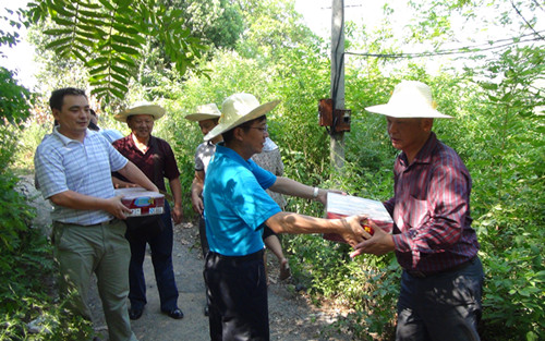 在该镇广播电视“村村通”的施工现场,胡忠明慰问了正挥汗如雨、辛勤工作的一线工人,向他们送去了清凉用品,并与工人们亲切交谈,叮嘱他们注意施工安全和防暑降温。