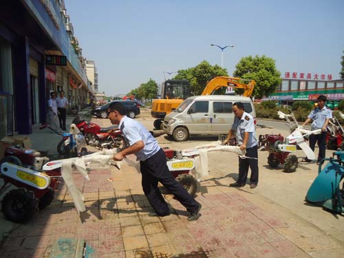 在宜官路和纬五路,区城管执法大队的50多名队员正在清理占道经营,督促经营户履行门前“三包”义务。在一饮食经营户门前,城管执法队员帮助业主搬运各种灶具和物品。该业主连声说:“谢谢”!在废品回收户门前,城管执法队员动手清扫门前的垃圾,弄得这位业主十分不好意思,主动清理门前的各种垃圾并表示一定要按照门前“三包”要求,实行垃圾袋袋化,保持门面门的干净整治。在一农业经营门前,城管执法队员们主动帮业主将出售的拖拉机从道上推动店全摆放整齐。(陈秀根 叶帅 潘胜利 )