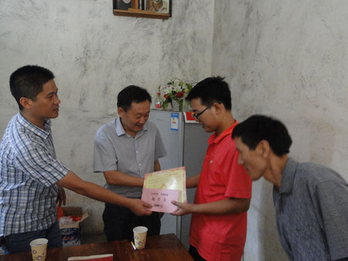 8月14日下午,副区长程海东在区人口计生委、区教育局以及大龙山镇相关负责同志的陪同下,来到大龙山镇新新社区看望即将跨入高校大门的贫困大学生於兆康,并送上助学金。 於兆康今年以430分的成绩被河南城建学院录取,家庭生活十分困难,其母亲常年患病,全家人的生活仅靠父亲在外打零工维持。在详细了解於兆康家庭情况后,程海东鼓励他要正视困难,树立信心,坚强生活,努力学习,以更加优异的成绩感恩父母,回报社会。(吴钟华 何传轩 邓立霞 丁厚祥)