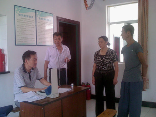 8月13日上午,副区长程海东到大龙山镇燎原社区看望为居民免费体检的医护工作者。