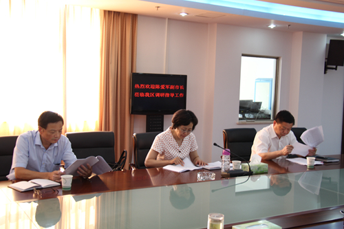 9月3日下午,副市长陈爱军来我区调研商务工作,市政府副秘书长刘春生、市商务局局长黄先满,区长娄雪松、副区长陈鹏陪同。 陈爱军对我区今年以来社会消费品零售总额、实际利用外资、外贸进出口总额三项指标快速增长予以充分肯定,希望继续保持强劲势头,再接再厉,争先进位。 娄雪松详细介绍了汽车4s店和红星·美凯龙等重点商贸服务业项目情况。(文:政府办/图:王四清)