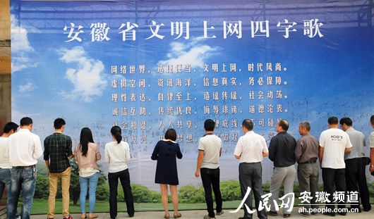 这仅是安徽省开展“坚守七条底线、传递网络文明”文明上网活动的一个体现。去年9月份,为进一步引导广大网民提高文明素质和法制素养,这个以进网站、单位、课堂、家庭、网吧为目标的活动在全省范围内持续开展,数月来,迎来喝彩声一片,引无数网民“点赞”。