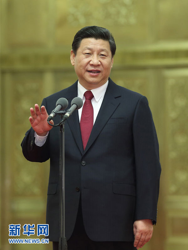 1月6日,党和国家领导人习近平、李克强、张德江、俞正声、刘云山、王岐山、张高丽等在北京人民大会堂会见探月工程嫦娥三号任务参研参试人员代表。这是习近平发表重要讲话。新华社记者 兰红光 摄