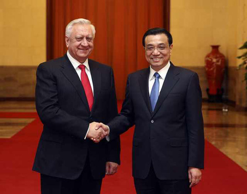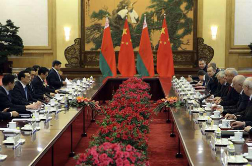 国务院总理李克强20日下午在人民大会堂同白俄罗斯总理米亚斯尼科维奇举行会谈。