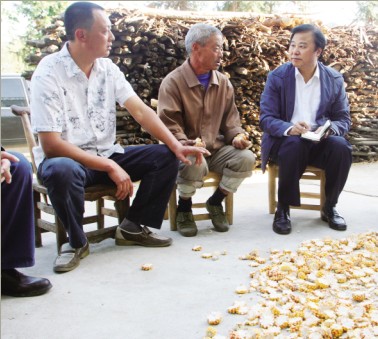 本文作者(右一)在安徽省金寨县农家采访。资料图片