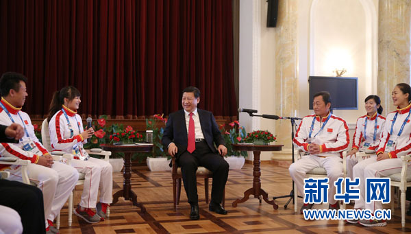 习近平的讲话使运动员、教练员、工作人员倍受鼓舞。他们纷纷表示,一定按照习近平总书记的要求,在索契赛场上全力以赴,奋勇争先,传递友谊,以最佳的竞技状态和良好的精神风貌,为国争光,不辜负习近平总书记的关心和祖国人民的期待。每一名运动员都有自己的奥运梦想。我们要把每个人的梦想汇聚起来,为实现体育强国梦、实现中国梦贡献青春和力量。