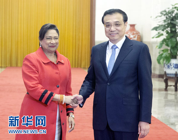 新华网北京2月25日电 据中国政府网官方微博报道,2月25日下午,国务院总理李克强在人民大会堂北大厅举行仪式,欢迎特立尼达和多巴哥总理比塞萨尔访华。之后,李克强在人民大会堂同比塞萨尔举行会谈,双方一致同意,深化中特关系与合作,推进中国一加勒比关系发展。