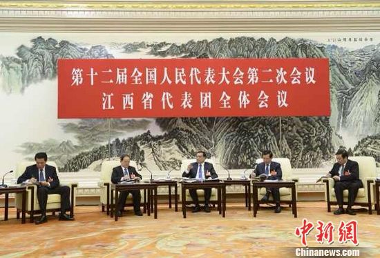 9日下午,李克强参加江西代表团讨论。中新社 刘震 摄