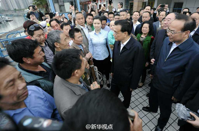 27日下午,在重庆万州考察的李克强总理来到港口码头和群众亲切交流。看到60岁的“棒棒”何绍强,李克强走过去接过他手中的扁担说:“已经磨得很润滑,看来干这行有年头了。”他还关切地抚着老何的腰,问他腰背怎么样?叮嘱他干活时注意身体,千万保护好腰。