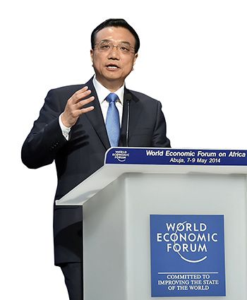 2014 年5 月8 日, 李克强在第24 届世界经济论坛非洲峰会上致辞。