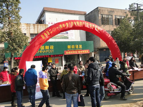 为全力做好2014年就业工作,1月22日上午,宜秀区今年首场“就业援助月”专场招聘会在大龙山镇举行,旺旺集团、天有轻纺等十家企业为当地群众送去了近1000多个岗位。