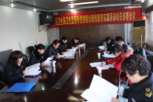 2月21日下午,区卫生监督所召开党的群众路线教育实践活动动员部署会议,全所干部职工参加了动员部署会会议强调,要统一思想,提高认识,切实加强组织领导,将教育实践活动与卫生监督重点工作任务紧密结合起来,与提升卫生监督执法能力、提高为民服务水平相结合,全面推进我区卫生监督执法工作。区卫生局党组书记、第一督导组组长金寿峰到会并讲话。金寿峰围绕“改进作风、提升能力、依法履职、深化服务、规范管理、创先争优”24字要求,对区卫生监督所开展党的群众路线教育实践活动提出了指导性意见。 (程金凰)
