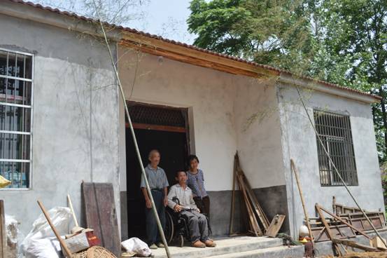汪锡虎一家3口,自己现年75岁,因病瘫痪生活不能自理,妻子和弟弟皆因残疾丧失劳动能力,家庭无收入来源,基本生活靠领取最低生活保障金维持。该户改造前的房屋建于上世纪70年代,三开间,土坯结构,黑暗潮湿,墙体严重倾斜,裂缝随处可见,安全状况令人担忧。