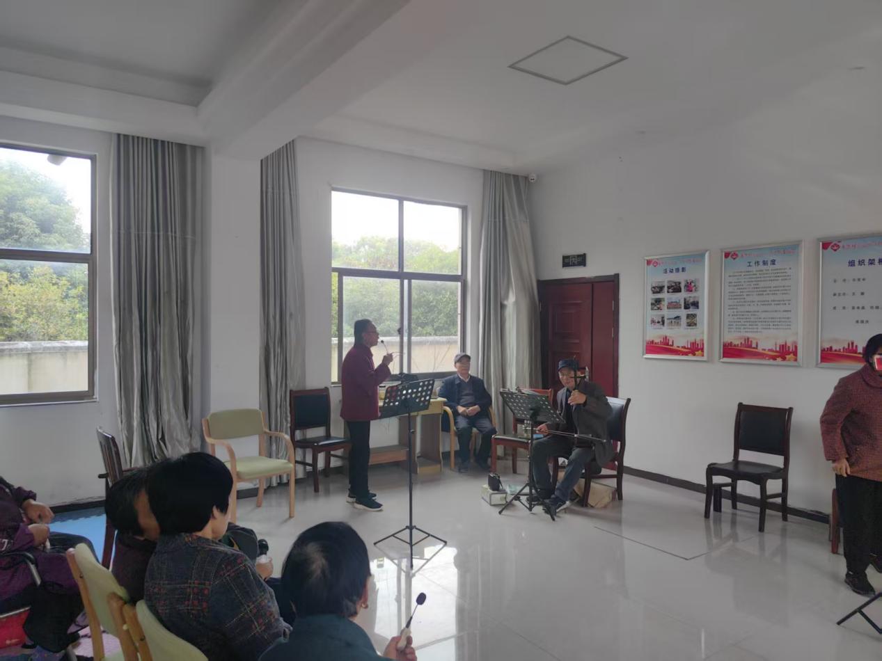 在老年服务方面,龙华村既注重“老有所乐”,更保障“老有所医”。考虑到村里老年人对传统戏曲的喜爱,由退休老村干牵头成立老年黄梅戏俱乐部,将每周一下午定为固定活动时间。活动现场,戏迷们自带乐器、自备行头,围坐在一起唱念做打、切磋技艺。《天仙配》《女驸马》等经典选段轮番上演,悠扬的唱腔、精彩的表演引得围观村民阵阵喝彩。俱乐部不仅为老年戏迷搭建了展示自我的平台,更在传唱经典中传承了黄梅戏文化,让乡村的文化生活愈发多姿多彩。