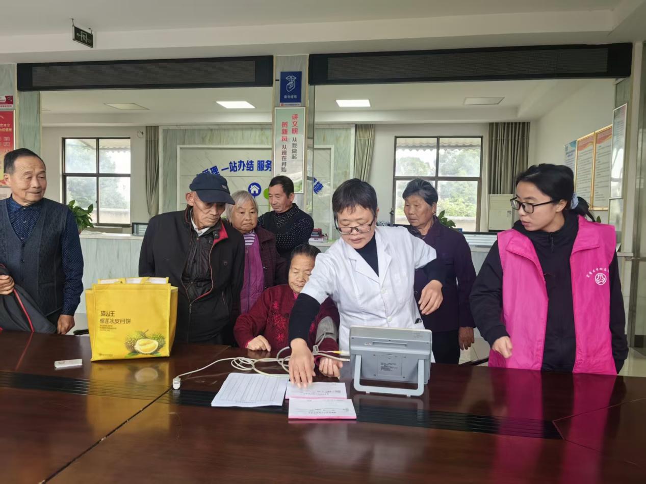 健康保障是老年人最关心的民生大事。为此,龙华村主动对接安庆第一人民医院,联合开展老年人免费体检公益活动。体检现场,医护人员有条不紊地为老人们提供量血压、拍胸片等基础检查服务,细致记录各项健康数据。更贴心的是,医院专门派出耳鼻喉科、内分泌科、心血管内科的资深专家坐诊,为老人们提供一对一义诊服务。专家们耐心询问病史、分析检查结果,针对常见老年病给出个性化防治建议和用药指导,还现场解答老人们关于慢性病管理、日常保健等方面的疑问,把优质医疗资源送到了村民“家门口”,有效解决了老年人“看病远、看病难”的困扰。