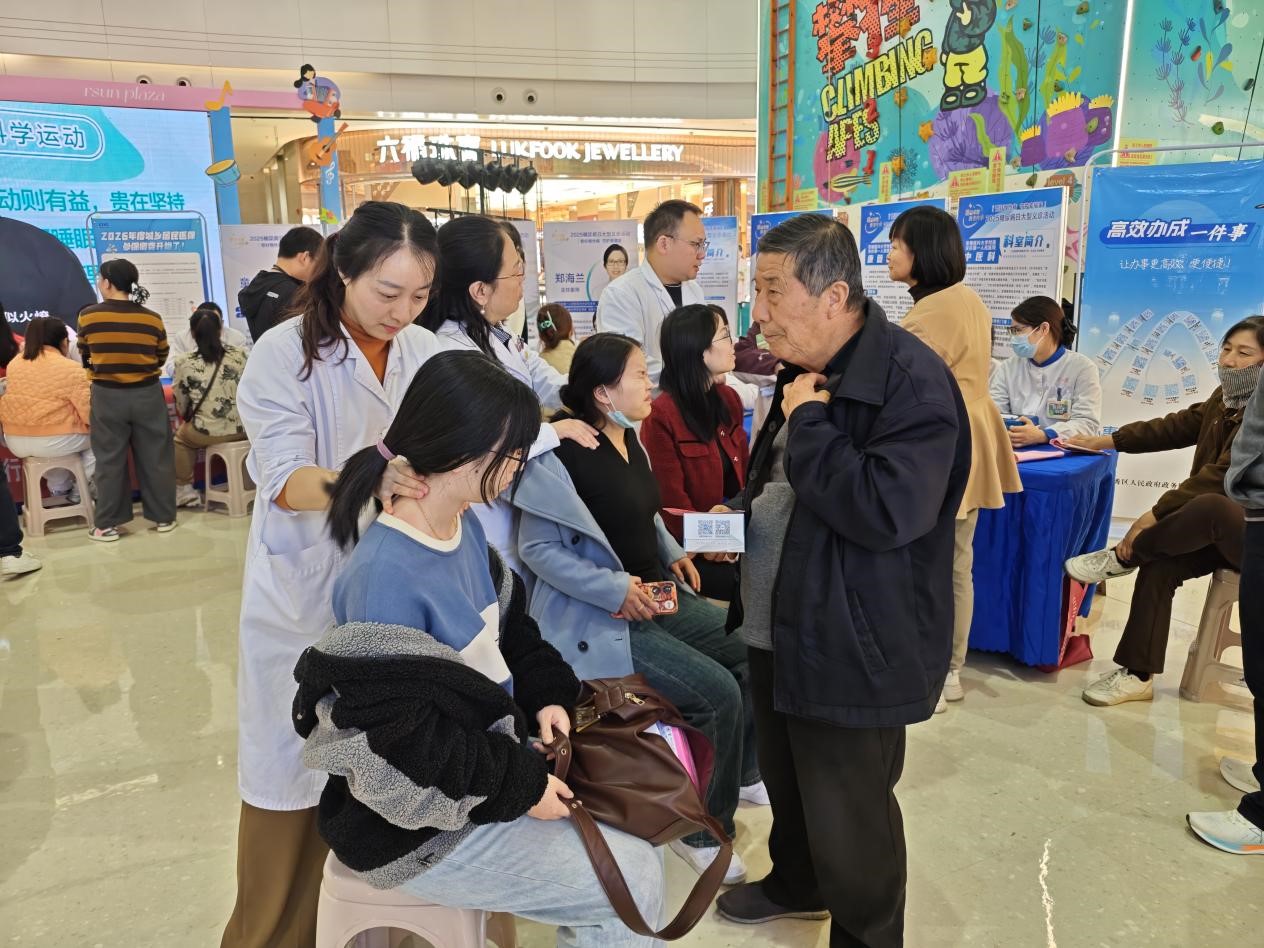 “我有多甜”测试区前,医务人员有条不紊地为市民免费检测血糖、血压,提供BMI及体成分分析服务,市一院内分泌科医生与营养师现场坐诊,一对一解答饮食调理、用药指导等问题。“甜蜜的烦恼”体验区里,专家结合案例详解糖尿病足、视网膜病变等并发症的危害与防控知识,让市民直观认识到规范管理血糖的重要性。“烦恼解压”义诊区则汇聚了市一院中医科、康复科、眼科等多科室专家,为有需要的市民提供针对性诊疗建议,切实解决健康难题。